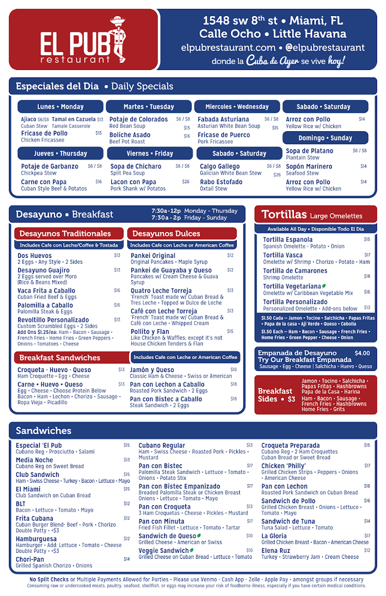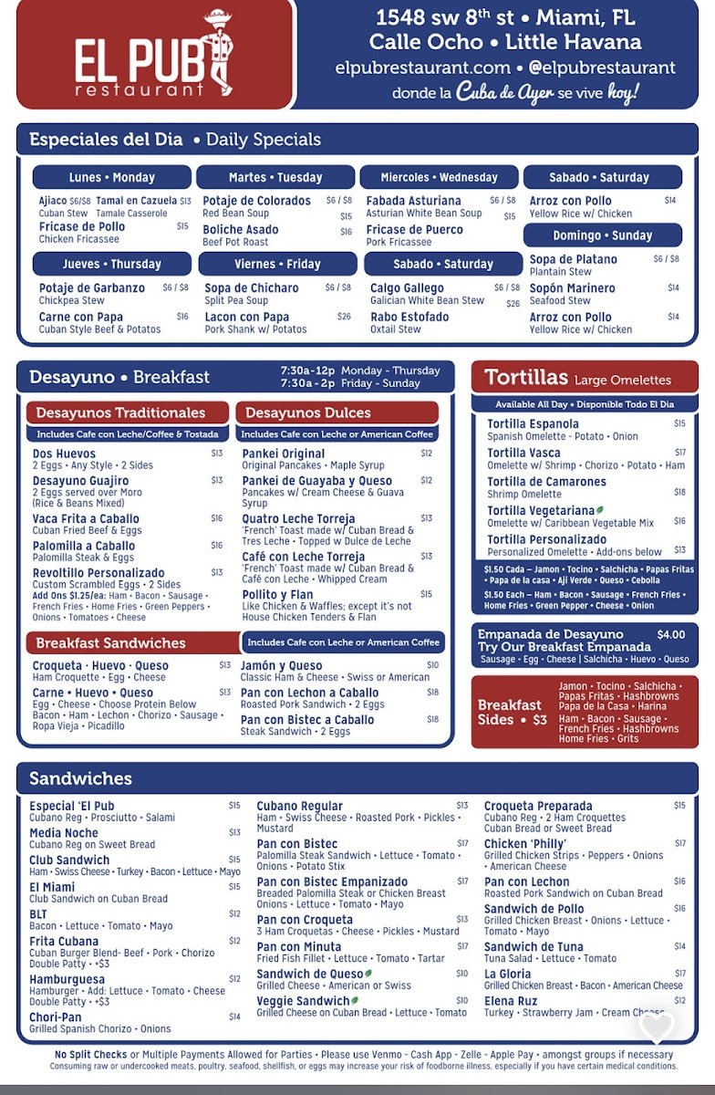 Customers rave about the perfect balance of spices, fresh ingredients, and generous portions. The lively atmosphere, complete with live Cuban music and warm service, enhances the dining experience, making each visit memorable. Whether it’s a juicy sandwich or a well-crafted cocktail, El Pub delivers bold, authentic flavors that celebrate Cuban culinary heritage.